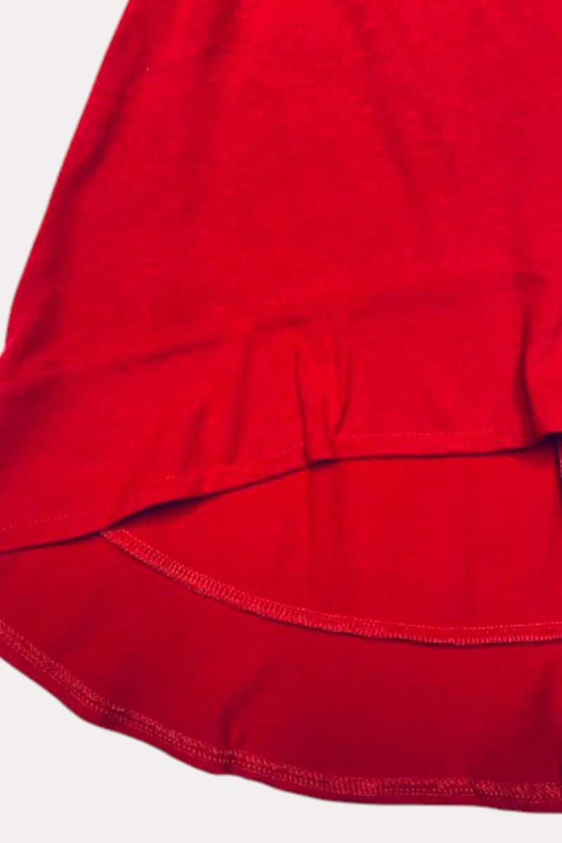 - Dress features solid red color, bottom with ruffle, long style & long sleeves.