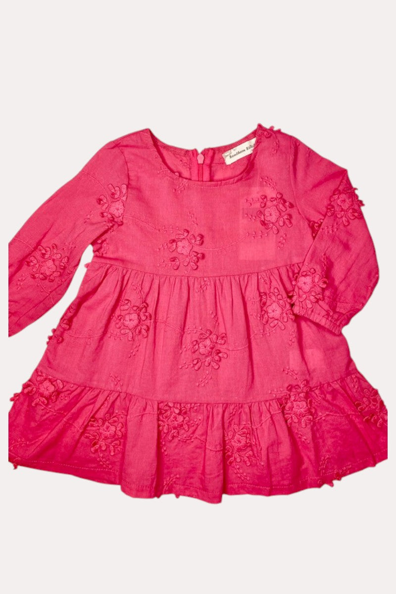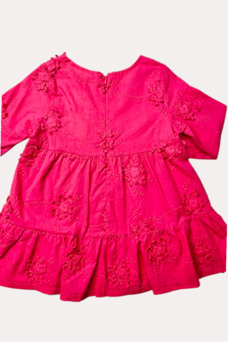 - Dress features solid hot pink color with long sleeves, back with zipper.