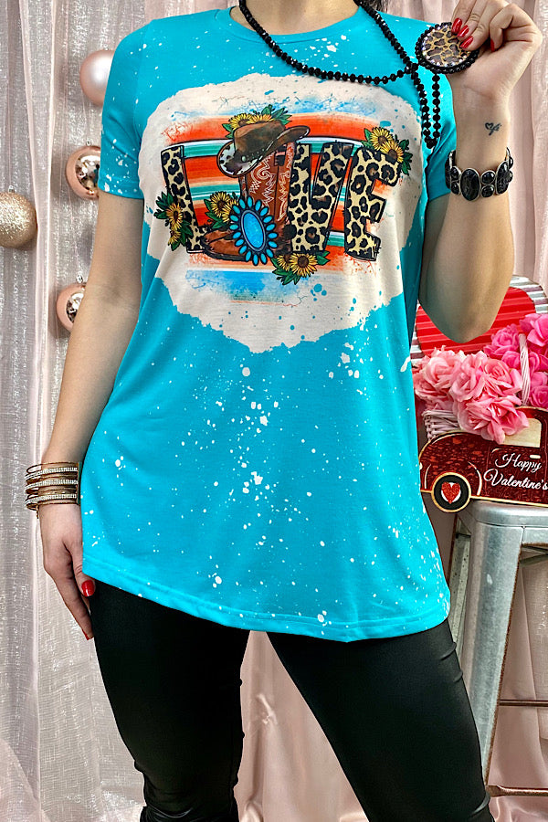 XCH0722-3 Turquoise LOVE boots & jewel printed short sleeve top