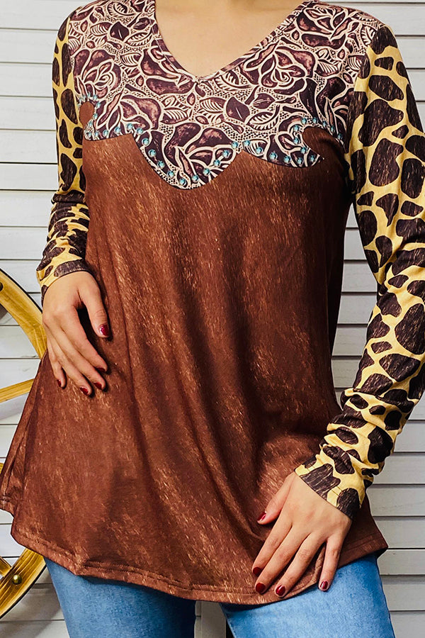XCH14657 Paisley & animal printed pattern long sleeve blouse