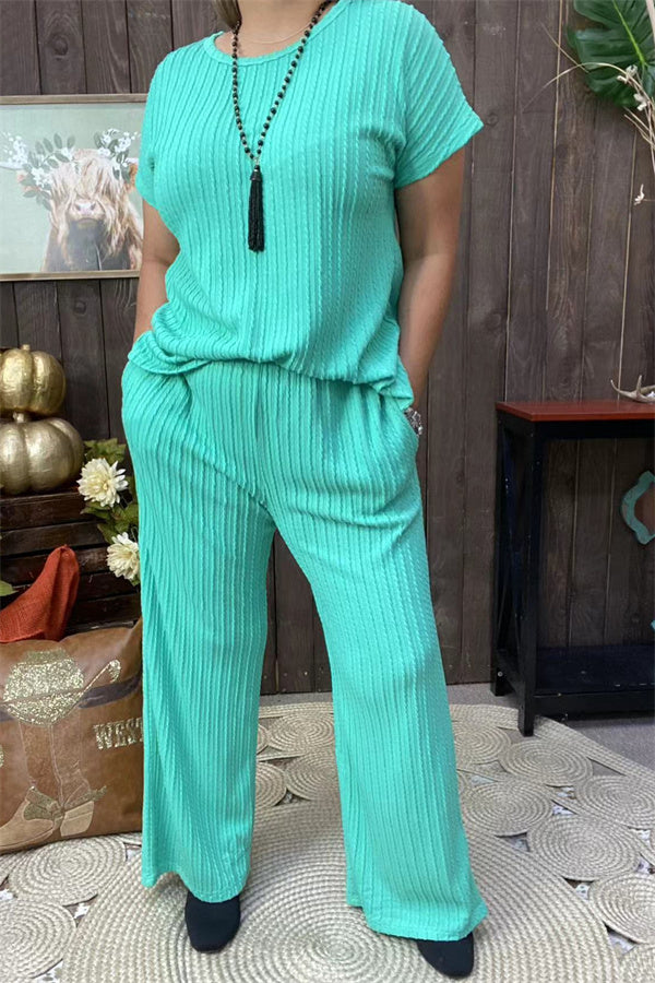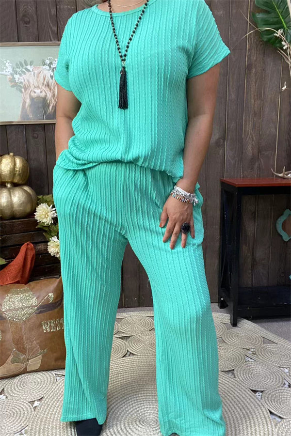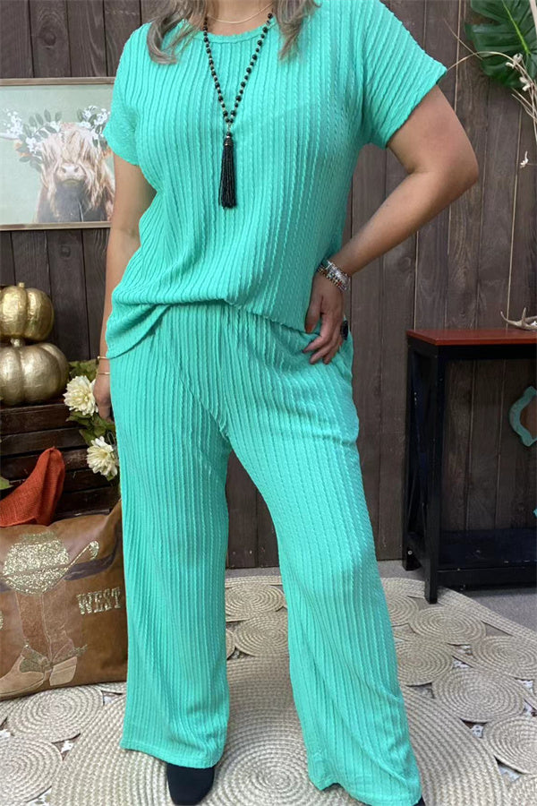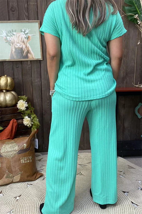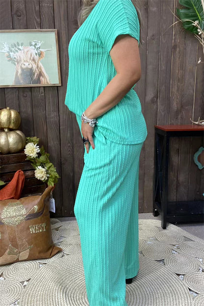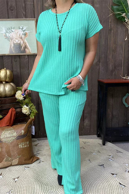 XCH15710 Mint 2pcs women set knitted fabric short sleeve top& pant